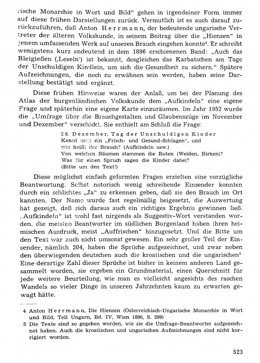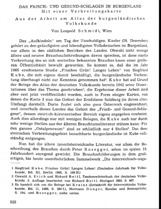 Leopold Schmidt, Das Frisch- und Gesund-Schlagen im Burgenland.